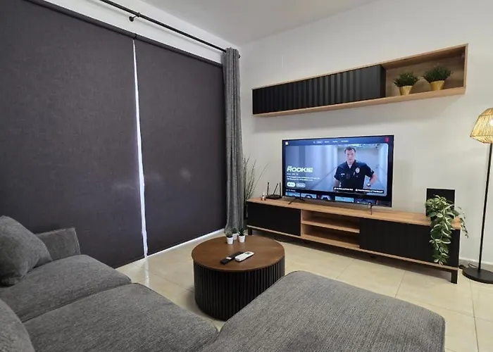 Ithaki Garden Cozy 1Br Apartment Universal Paphos, som ligger 2 km från Paphos Arkeologiska park, erbjuder en terrass med en pool. Gästerna kan besöka Pafos fästning ungefär 25 minuter bort till fots.